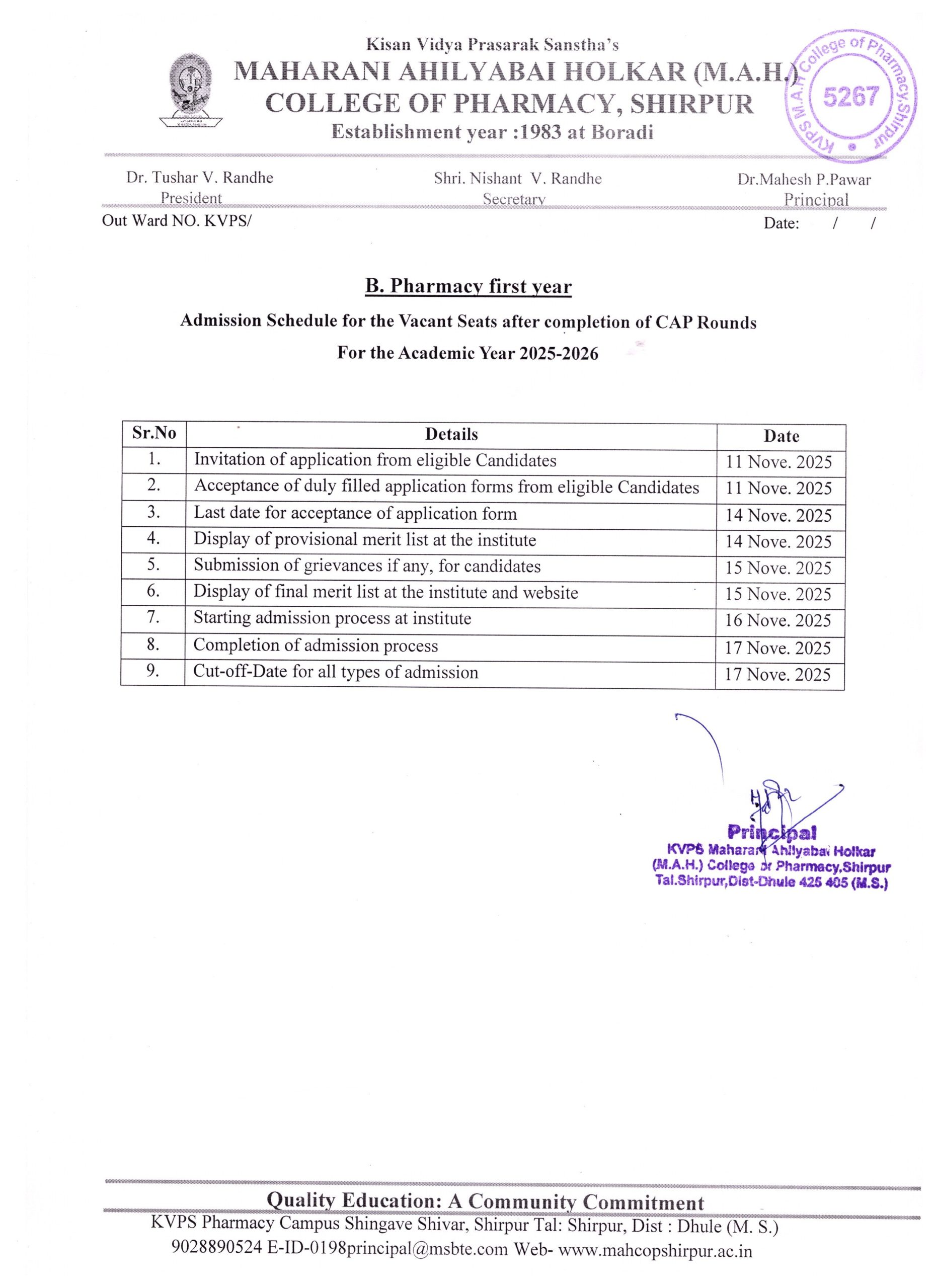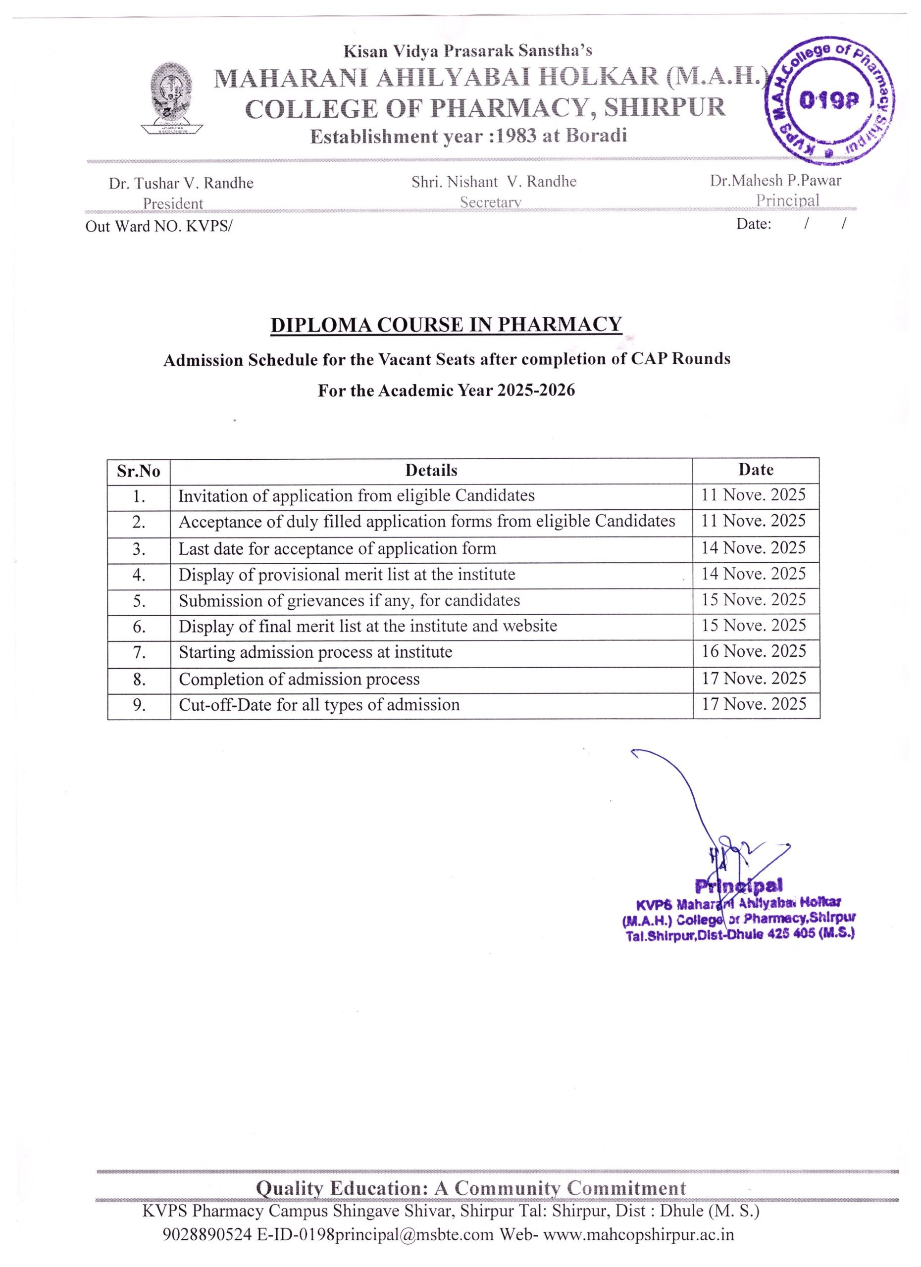 Kisan Vidya Prasarak Sanstha’s Maharani Ahilyabai Holkar (M.A.H.) College of Pharmacy